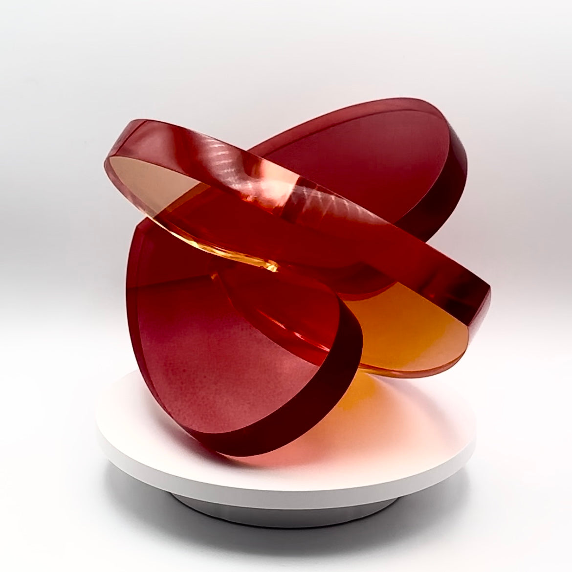The transparency of the acrylic allows light to pass through, casting enchanting reflections and adding a touch of brilliance to any space. Whether displayed on a mantel, a shelf, or as a centerpiece, "Interlocking Hearts" serves as a radiant reminder of enduring affection and togetherness.